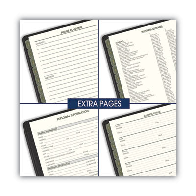 Show you care by choosing a monthly planner made from recycled materials. Features tips for “green living." Tabbed one month per two-page spread with unruled blocks; past, current and four future months reference. Telephone/address page. Dated/Undated: Dated; Calendar Format: Monthly; Page Format: One Month per Two-Page Spread; Edition Year: 2024 to 2025.